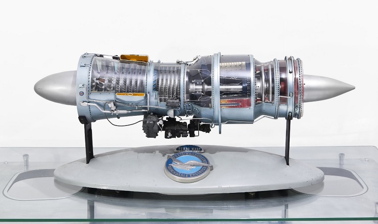 Importante maquette en écorché à l'échelle 1/4, en métal et plexiglas, finement détaillée, montée sur une base ornée de l'écusson du constructeur
