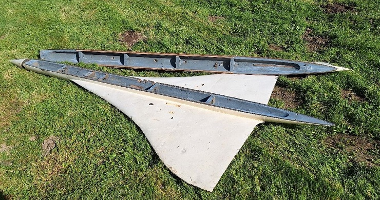 La vitrine comprend pluieurs profils d'ailes delta, expérimentés en soufflerie pour l'étude du supersonique.