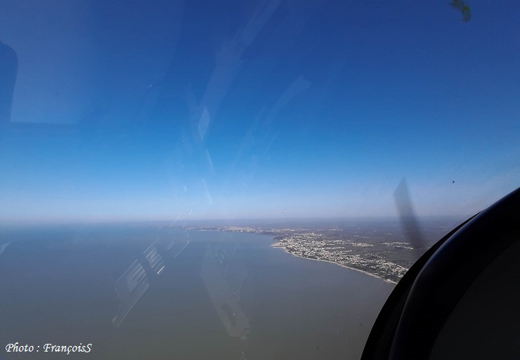 Droit devant, juste de l'autre côté de l'eau, c'est Pornic au loin.